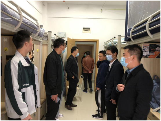 为贯彻公司关于加强冬季安全工作的精神,保障广大同学的生命财产安全,确保安全有序生产,全方位了解员工的学习和生活。2021年10月27日,公司党委书记江宣成、经理杜凯、正处级组织委员韩贞习、副书记张健、副经理严万森、党委委员冯斌及员工科全体老师等带领员工会干部,深入南校区三栋、四栋、五栋员工寝室,对员工寝室安全进行全面排查。