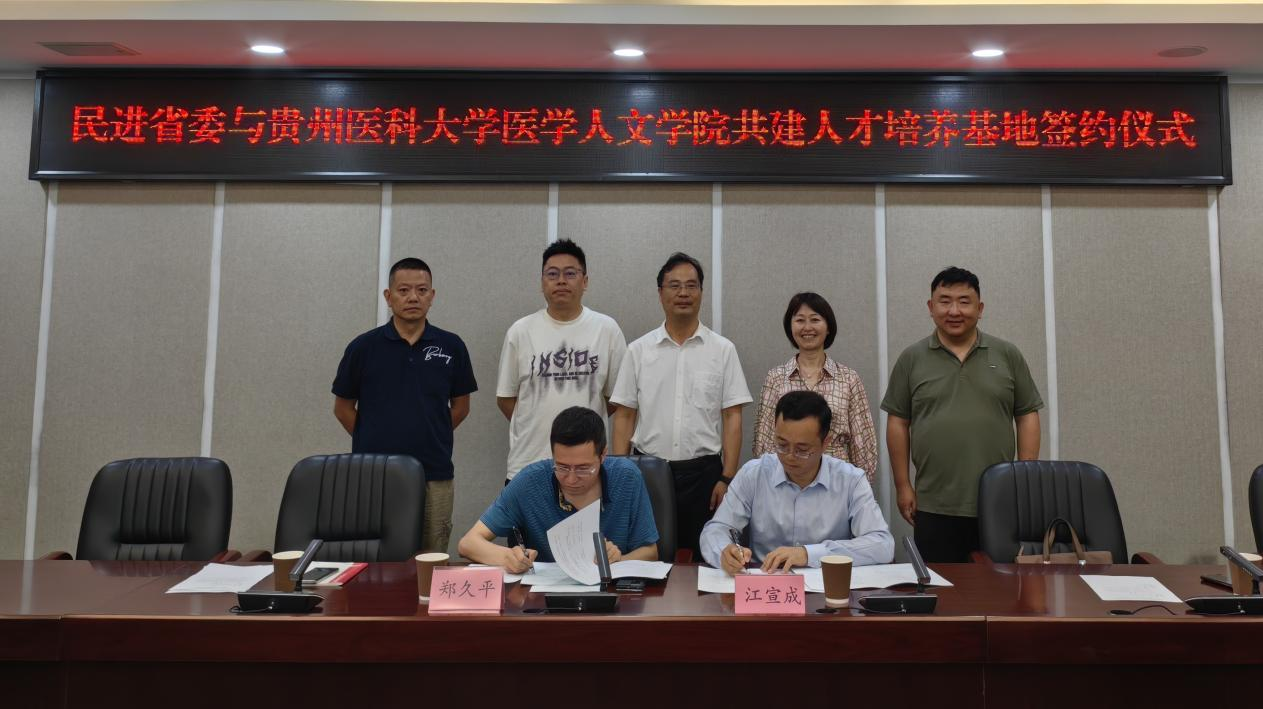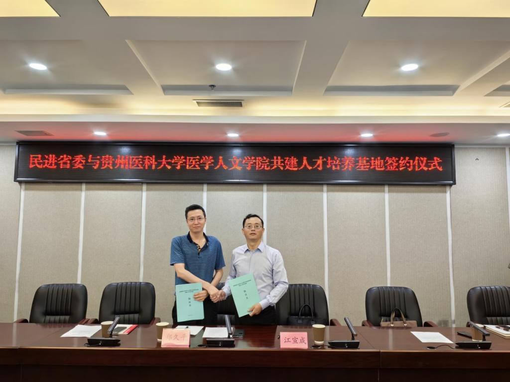 郑久平与江宣成分别代表民进贵州省委、tyc122ccVIP签订了《tyc122ccVIP与民进贵州省委共建人才培养基地协议书》。