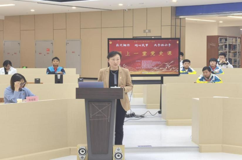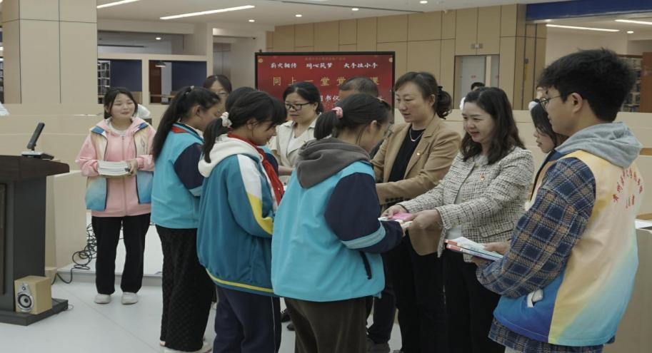 4月25日,tyc122ccVIP员工党支部、图书馆与档案馆党支部、贵安新区马场镇洋塘小学师生代表在校图书馆4楼圆厅共同开展了公司图书馆典耀中华主题阅读推广活动之“薪火相传·同心筑梦 大手拉小手,同上一堂党史课”主题党日活动。活动由图书馆与档案馆党支部书记刘亮主持。
