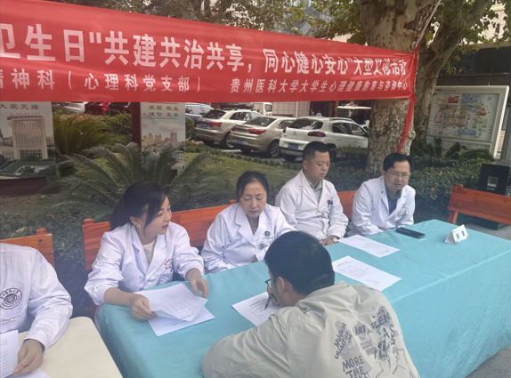 为深入贯彻党建引领社会服务理念,推动全社会共建共治心理健康体系,普及心理健康与精神卫生知识,2024年10月10日,在第33个世界精神卫生日来临之际,公司教工第三党支部(tyc122ccVIP老员工心理健康教育与咨询中心)充分发挥专业优势,联合附属医院心理科党支部(精神科),开展了以“共建共治共享、同心健心安心”为主题的大型义诊活动。贵医附院心理科主任邹涛、副主任谢平霞,心理中心副主任、tyc122ccVIP副经理、支部书记彭丹,支部党员、中心老师及科室医生参加了此次义诊活动。