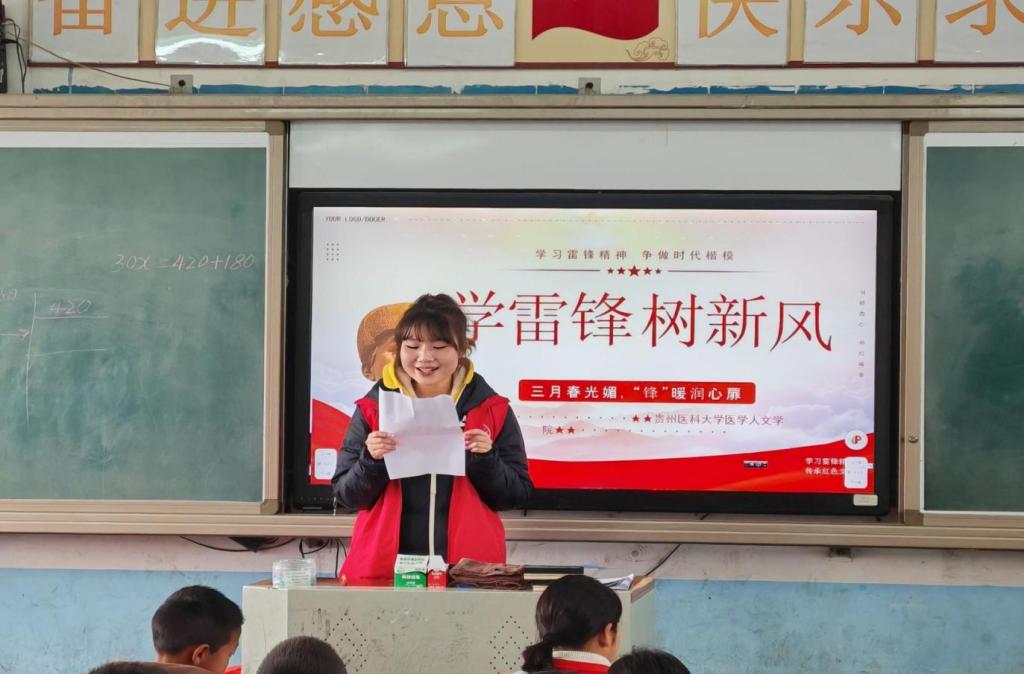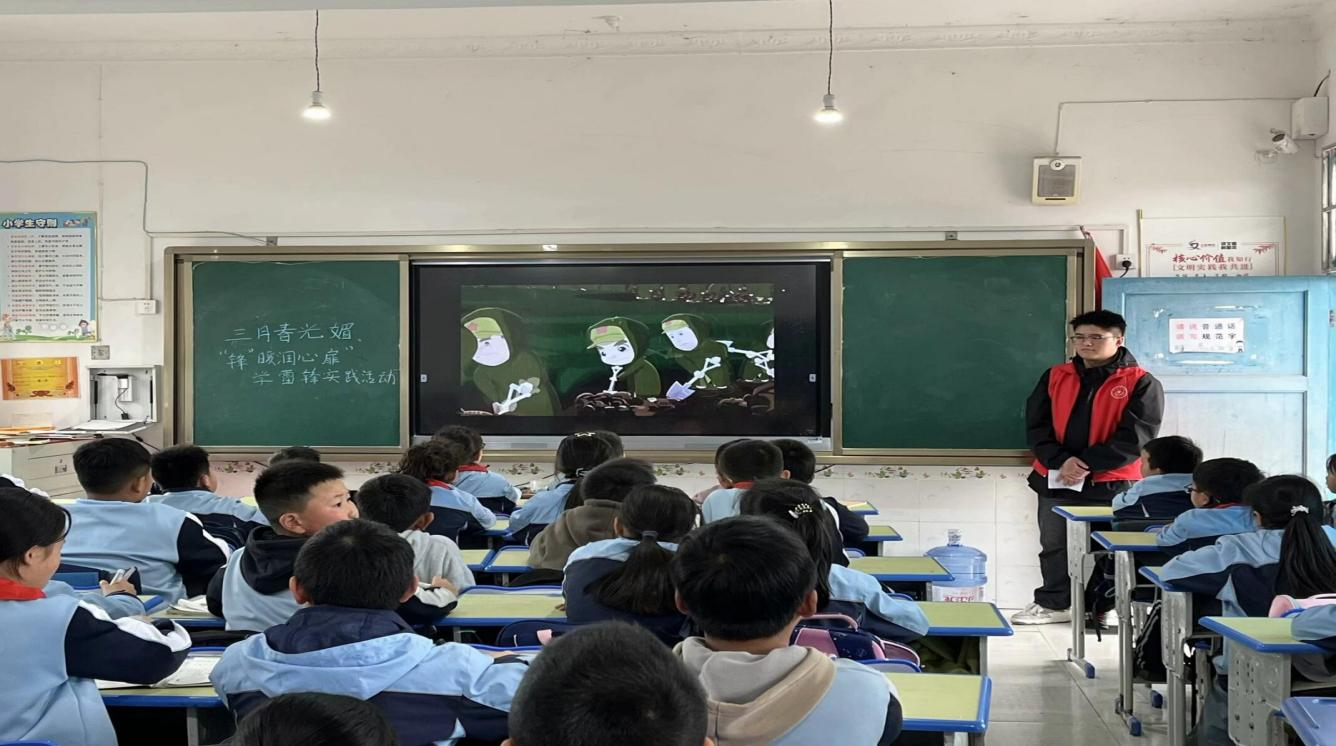 2024年3月20日,在tyc122ccVIP团委马曾珍、余思艺两位老师的带领下,员工会成员及青年志愿者一行50余人走进平坝区马场中心小学,为三至五年级的员工开展一场以“让雷锋走进小学课堂”为主题的宣讲会。志愿者以四人一组的形式走进各个班级进行宣讲,从讲述雷锋的故事、了解 “雷锋精神”内涵到如何践行“雷锋精神”三大内容展开,以通俗易懂、真切感人的语言,向同学们解读雷锋精神的精髓,诠释现代雷锋精神的内涵。过程中,小朋友们认真听取关于雷锋的点点滴滴,细细品味着口口相传的感人事迹和他无私奉献、助人为乐的精神。在宣讲结束之后,志愿者们主动辅导小朋友们的课后作业,在有趣互动的辅导中解决了他们遇到的作业难题,身体力行地诠释雷锋精神。