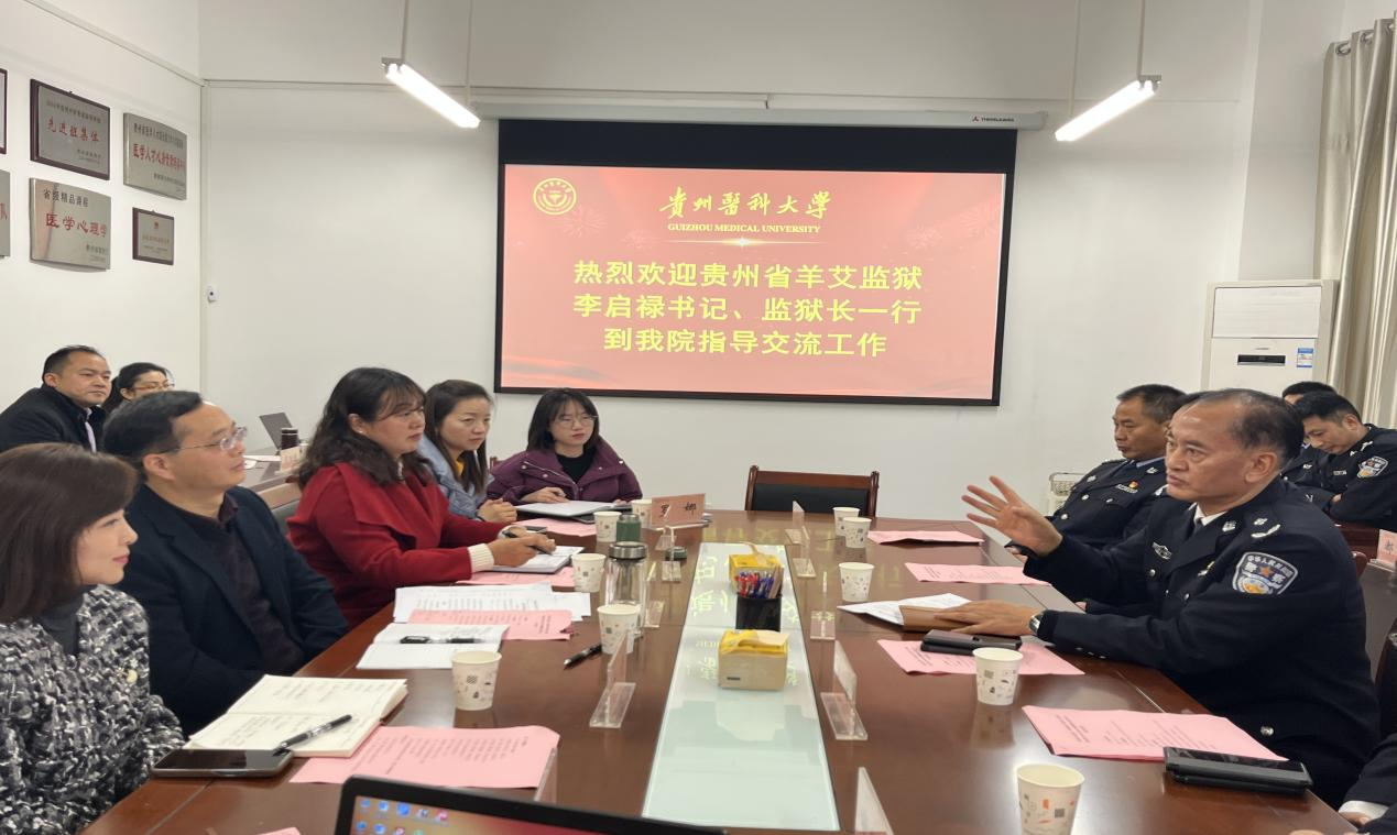江宣成对贵州省羊艾监狱一行的到来表示热烈的欢迎,并介绍了tyc122ccVIP的历史沿革、学科专业、教学科研、团队队伍等,包括法学专业、应用心理学专业、应用心理学硕士点、教学实践基地、“三全育人”综合试点改革、卓越法律人才教育培养等情况。彭丹对老员工心理健康教育与咨询中心作了简要介绍,包括制定员工心理健康教育计划,组织实施心理健康教育活动;开展员工心理普查测评活动,建立员工心理档案;开展多种形式的在校老员工的日常心理咨询与辅导工作;做好老员工心理健康相关课程的教学工作;建立有效的危机干预机制,做好突发问题的处理等。