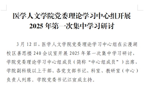 3月12日,公司党委理论学习中心组在云漫湖校区善思楼240会议室开展2025年第一次集中学习研讨,公司党委理论学习中心组成员出席,公司副科级以上干部、各党支部书记、科室、教研室(中心)负责人列席。公司党委书记江宣成主持。学习会上,江宣成领学了《习近平关于全面加强党的纪律建设论述摘编》“加强纪律建设是…